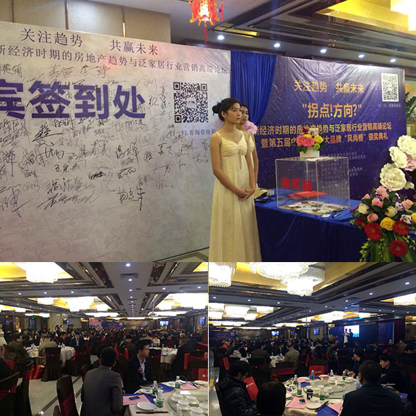 2014年12月27日下午,由国际建筑装饰室内设计协会、台湾海峡两岸文化经贸保障促进会携手美家网共同策划“拐点!方向?”新经济时期的房地产趋势与泛家居行业营销高端论坛暨第五届中国家居十大品牌“风尚榜”颁奖典礼,在佛山华夏大酒店四楼举行。金艾陶瓷砖在本届典礼上,荣获“微晶石十大品牌”、“全抛釉十大品牌”,同时再次荣膺“陶瓷一线品牌”。