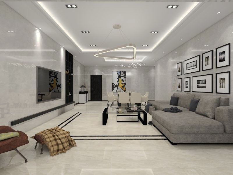 大户型客厅在软装和风格选择上有很大的空间,吊顶造型设计相对简洁,隐藏式的灯带能够渲染出更加温馨的家居氛围,再搭配数盏筒灯及水晶灯的点缀,营造出时尚大气的视觉效果。现代风格的电视背景墙多会采用瓷砖、大理石来装饰,布艺沙发也是现代风格的绝佳搭配,再配合大小合适的茶几,简洁实用又美观大方。