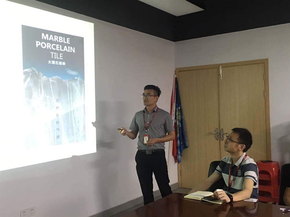 6月8日上午九点,金艾陶瓷砖华夏总部二楼会议室举办了一场别开生面的《新品推广—完成下半年度业绩的核武器》-销售精英演讲会,全体销售精英以及市场部所有人员参与了本次会议。