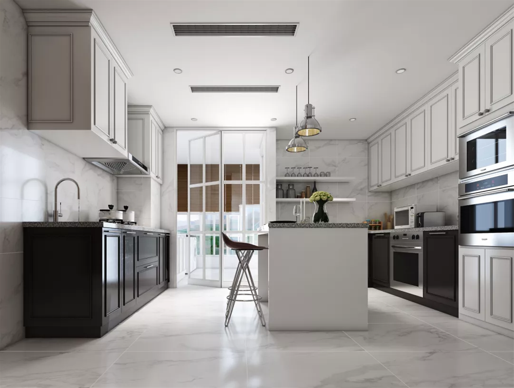 在厨房设计时,小伙伴们还可以尝试新风系统,尽快排除废气,降低温度。另外,小伙伴们还要时常清理厨房,从根本上断绝异味来源。
