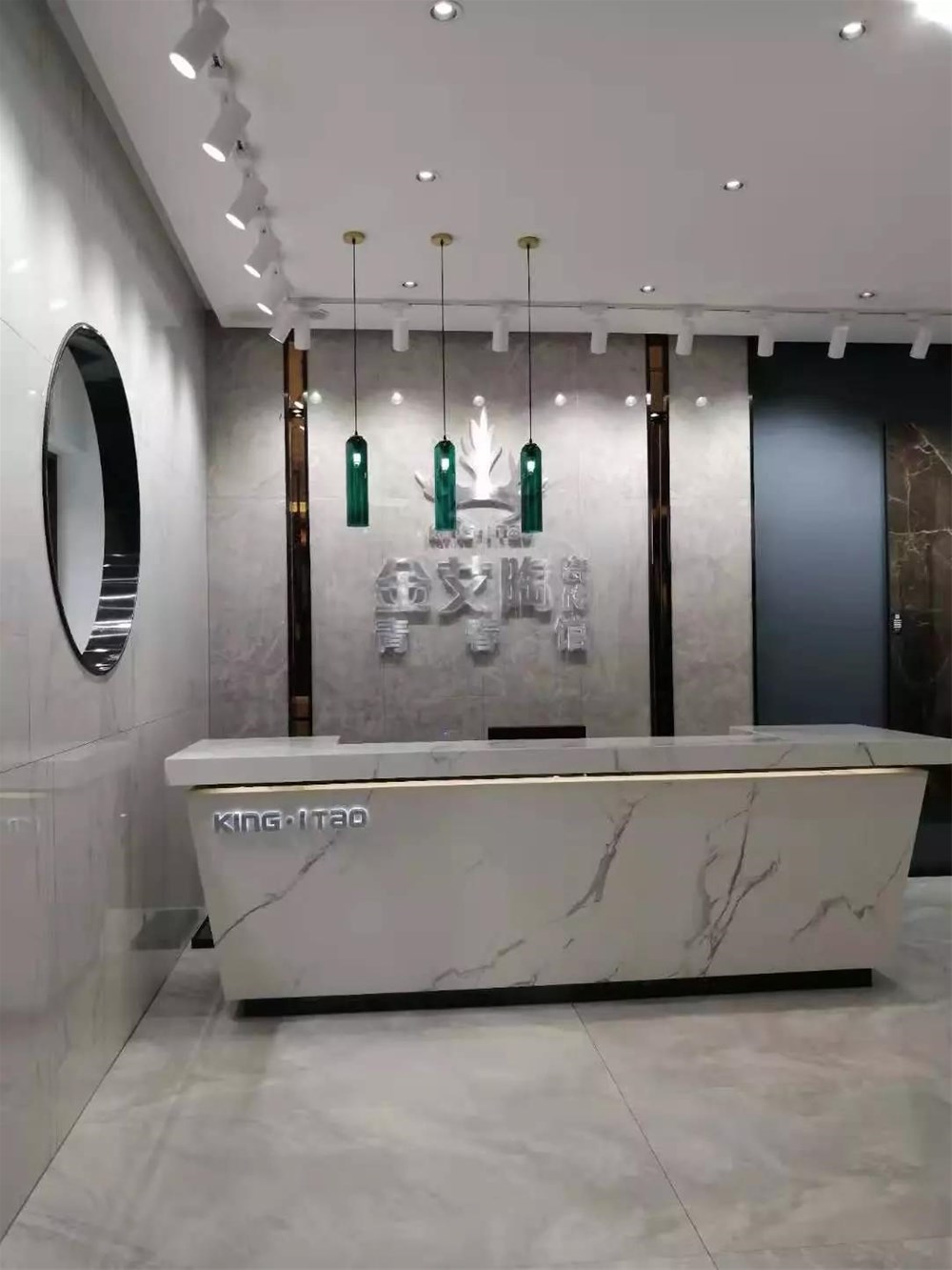 暖灰色通体大理石KA9M009打造前台背景墙非常有味道,不愧是多年的畅销榜长青树。