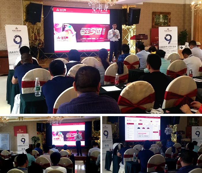 金秋时节,在国庆节来临之际,重庆抛出重磅好消息,金艾陶3D系统•设计不求人暨9面通体大理石发布会—重庆站于9月27日在重庆锦达园礼宴大酒店举行,金艾陶瓷砖品牌营销总经理罗胜、网销部运营总监刘小良、金艾陶南销区培训老师廖国根、重庆金艾陶瓷砖运营总经理曾令波、金艾陶3D系统负责人陈嘉辉老师以及西南地区的金艾陶瓷砖代理商和意向客户共计40多位嘉宾参加本次活动。