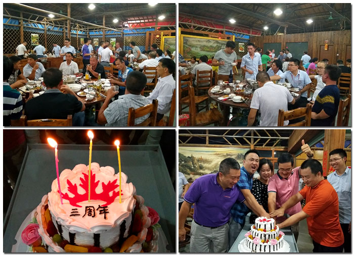 在三周年庆典上,还准备了一个大蛋糕,举办了一个欢快的庆祝party。全体金艾陶人欢聚一堂,切蛋糕、分蛋糕,氛围其乐融融。