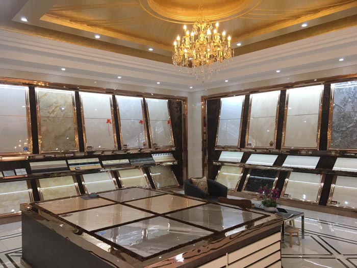 江苏南通金艾陶瓷砖品牌专卖店位于南通市港闸区新永兴仓储1期,展示面积600多方,办公区域150多方。整个店面设计奢华大气,店内设有客餐厅、厨房、卫生间等不同应用功能的多个模拟样板间,产品有9面通体大理石瓷砖、金刚釉II代瓷砖、金刚釉瓷砖、微晶石、艾釉石、喷墨瓷片、抛光砖等多个品类瓷砖,满足众多消费者的选购需求。