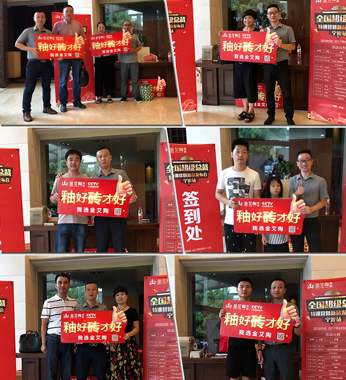 2017年8月9日—11日,陶瓷一线品牌金艾陶在浙江宁波举行“全国超级总裁特训营暨新品发布会”活动,金艾陶瓷砖品牌营销总经理罗胜、北区品牌销售总经理伍立州、网销部运营总监刘小良、金艾陶宁波代理商李小炉、圆方软件资深讲师邓智韬以及以及浙江、上海等地金艾陶瓷砖代理商、宁波周边瓷砖分销商、店长和店员等嘉宾一同出席了此次活动。