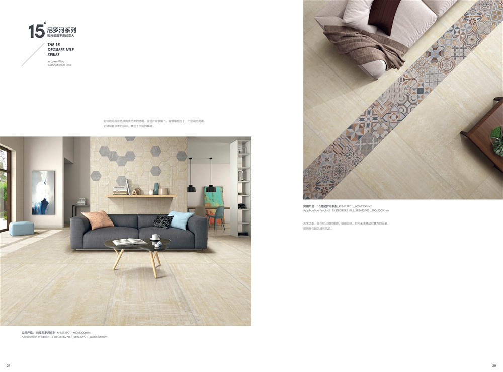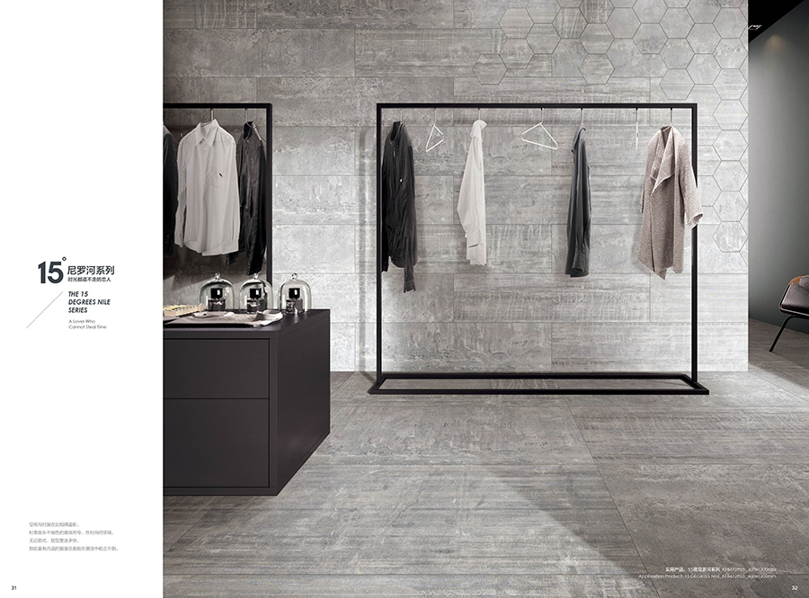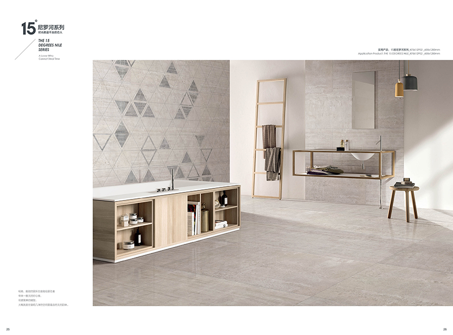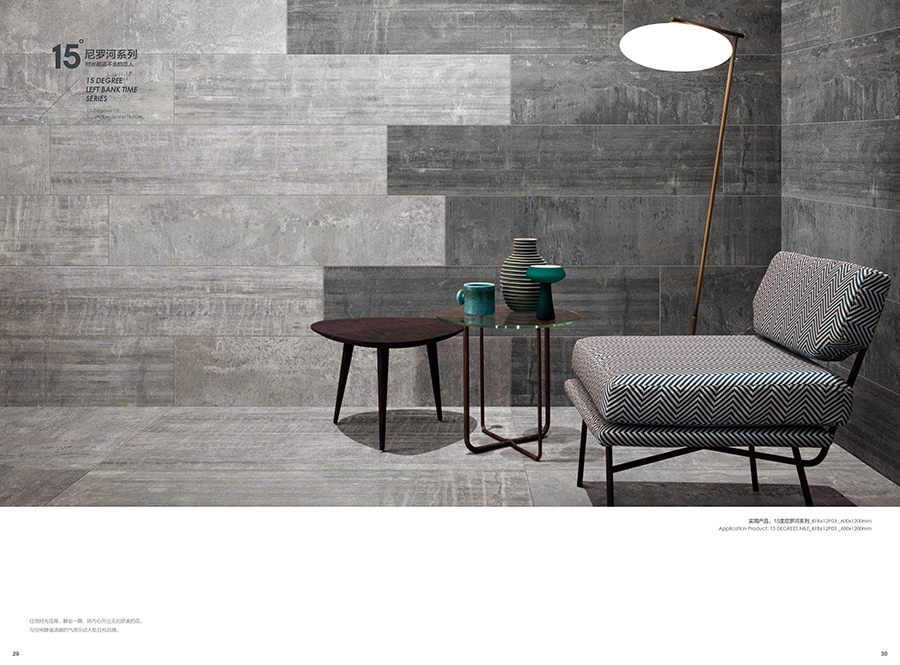 15度尼罗河,如夜幕下的尼罗河流,一路向前,偶尔也随性地流淌,以自己的风华凝聚时代的灵魂给予世人。追溯千百年前的智慧,设计师将尼罗河的蜿蜒流长带入产品的抽象表现中,在传承中沉浸强烈的自然气息,风格独特而彰显艺术的闲逸,传承精髓而散发着浪漫风情,无论是大面积铺贴,还是与其他元素混搭, 都在相得益彰中凸显浓郁的文化韵味。