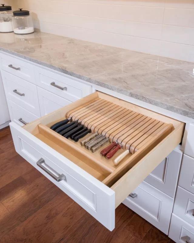 厨房空间不大,东西却不少,如果没有收纳好,加上油烟肆虐,厨房一定成了乌烟瘴气的地方,所以说,厨房装修首先考虑的问题是—收纳!