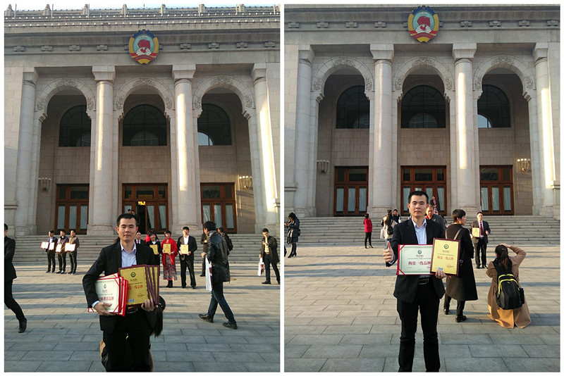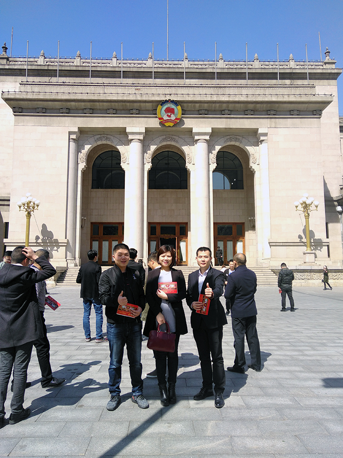 金艾陶瓷砖品牌北京代理商与网络营销部经理王宏城在会场前合影留念